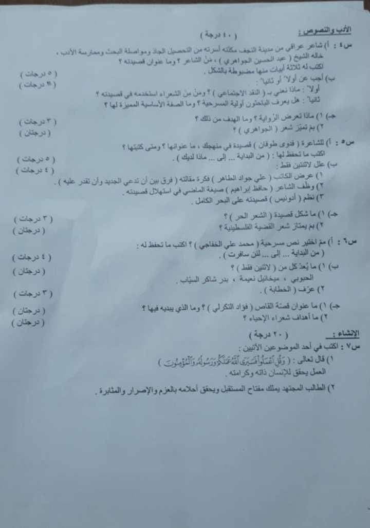اسئلة العربي الدور الثالث السادس العلمي 2024 الاحيائي و التطبيقي المحاولات